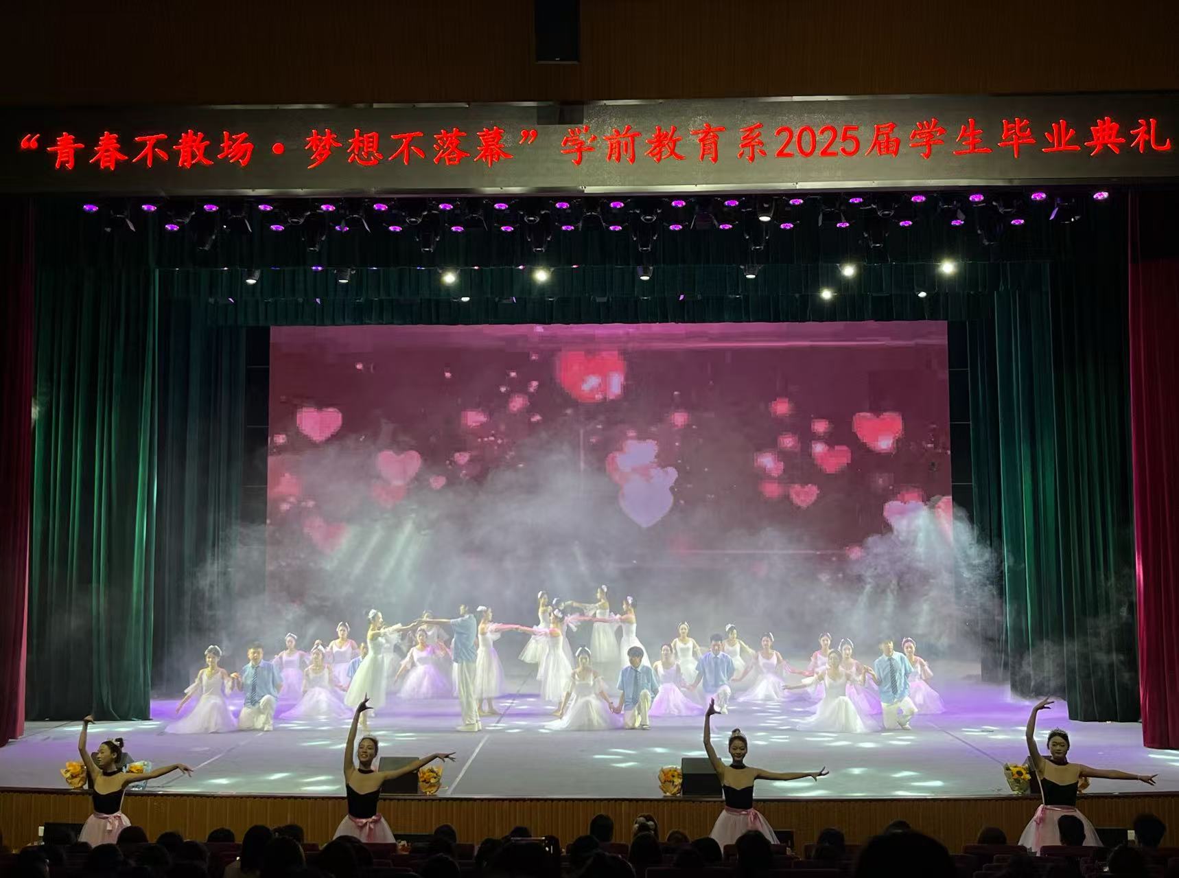 2025年6月23日晚,以“青春不散场,梦想不落幕”为主题的学前教育系2025届学生毕业晚会在学校雏鹰剧院隆重举行。学前教育系全体师生、毕业生齐聚一堂,共同见证这场充满温情、感恩与力量交织的青春盛典,为毕业班学子们的校园时光画上圆满句号,也为他们奔赴民族地区幼教一线送行。