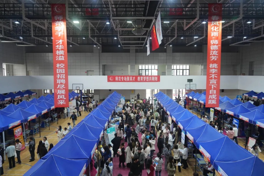继成功举办非师范专业毕业生双选会后,为进一步搭建校企沟通合作平台,促进师范专业毕业生充分就业。11月17日,我校在体育馆举办了以“师”梦逐行·“职”引未来为主题的2025届师范专业毕业生专场双选会。