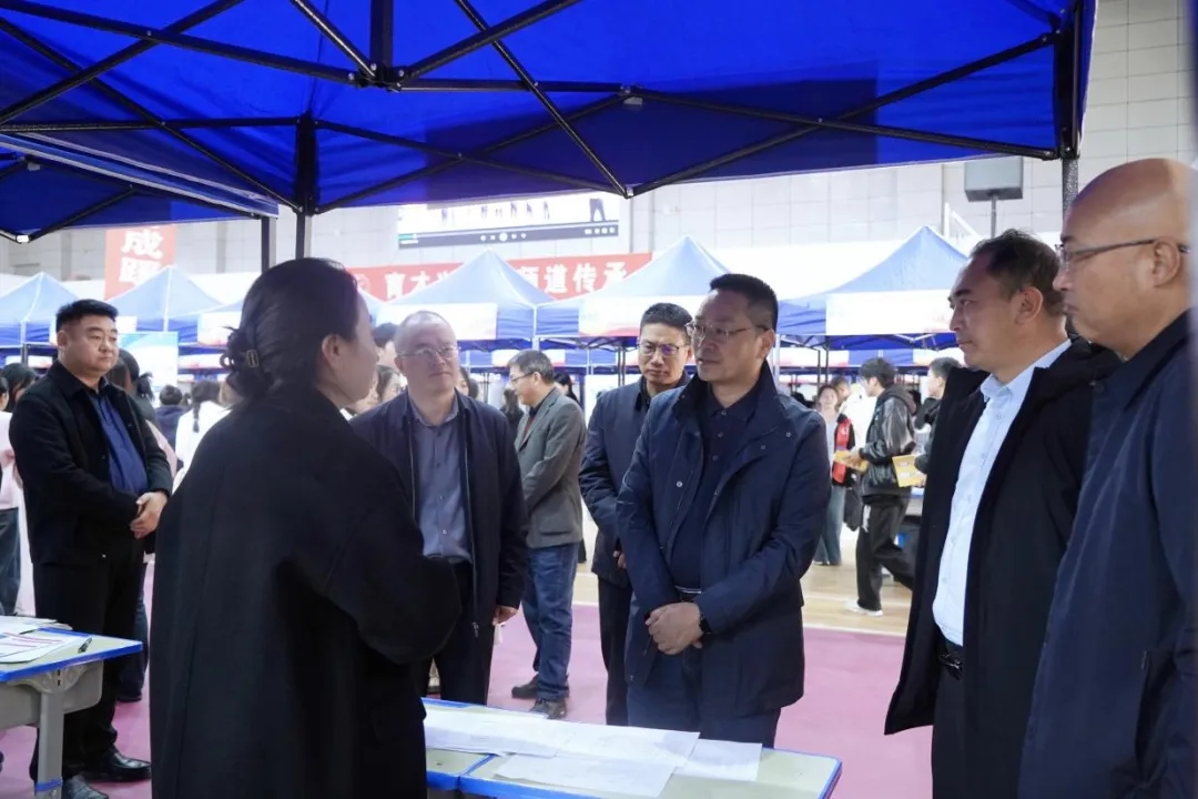 学校党委副书记、校长赵波,党委副书记、工会主席王玉萍,党委委员、副校长王晓东,党委委员、纪委书记沙德康,党委委员、副校长马辉,副校长袁顶国,党委委员、组织人事处处长潘开成莅临现场,对各用人单位的到来表示热烈欢迎,并对他们长期以来对我校就业工作和人才培养的大力支持表示诚挚的感谢。各用人单位对我校的人才培养质量和毕业生素养给予了高度评价,诚恳希望与我校深化长期合作。同时,各用人单位还对现场学生提供了求职应聘的指导,帮助同学们树立正确的人生观和就业观。