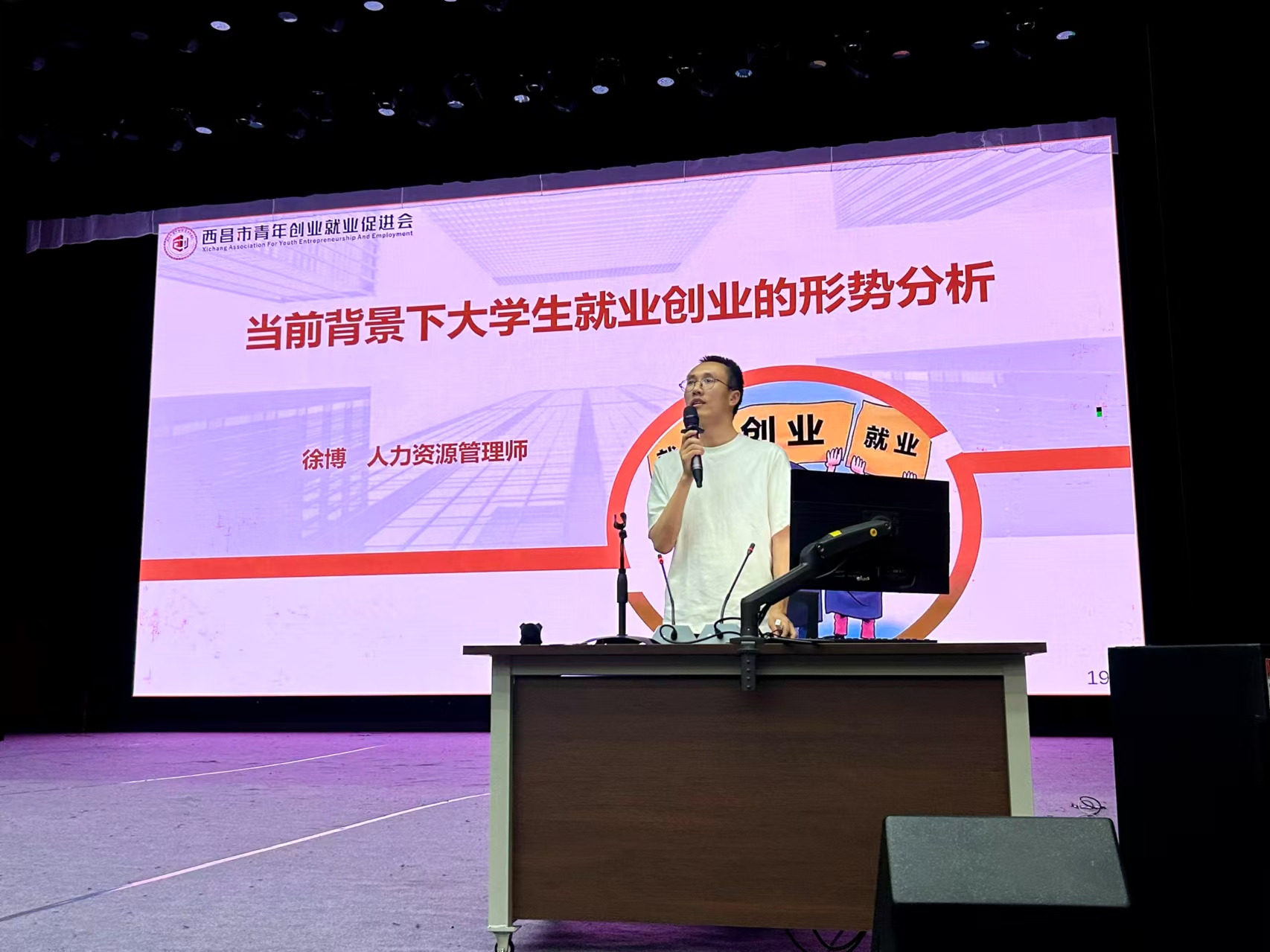 校外创业指导教师徐博在会上指出,当下大学生就业形势严峻,岗位竞争激烈,针对各方面的挑战,徐博老师为大学生就业提出了一系列切实可行的建议。第一,在职业规划方面,尽早明确职业方向,从大一、大二就开始思考未来职业发展,通过参加职业测评、咨询专业老师、前辈等方式,制定合理的职业规划。第二,在职业技能方面,积极参加各类实践活动,将理论知识运用到实际中,提高解决问题的能力。利用课余时间学习与专业相关的技能,如数据分析、项目管理等,增加自身竞争力。第三,在求职技巧方面,他指出要精心制作简历,突出自身优势与实践经验,避免冗长和空洞;面试时要提前做好准备,了解企业背景和岗位要求,展现出自信、专业的形象,清晰地表达自己的观点和能力 。