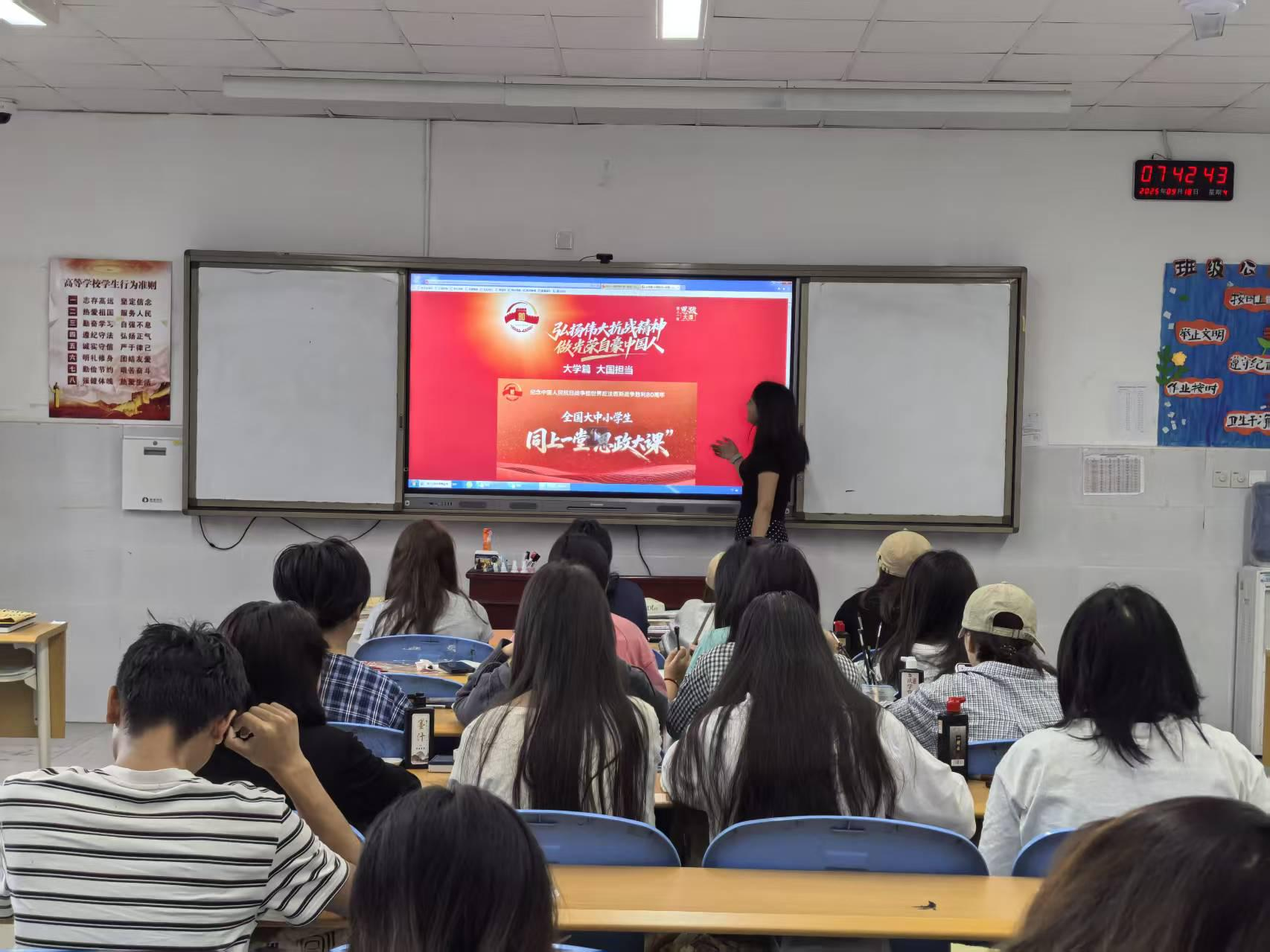 在系部的统一安排下,各班宣传委员提前通过线上平台推送节目播出时间与观看链接,确保每位同学能够及时观看。此次观影活动不仅是为了让同学们接受了一次深刻的精神洗礼,也是为了进一步激发了大家的爱国热情和民族自豪感。