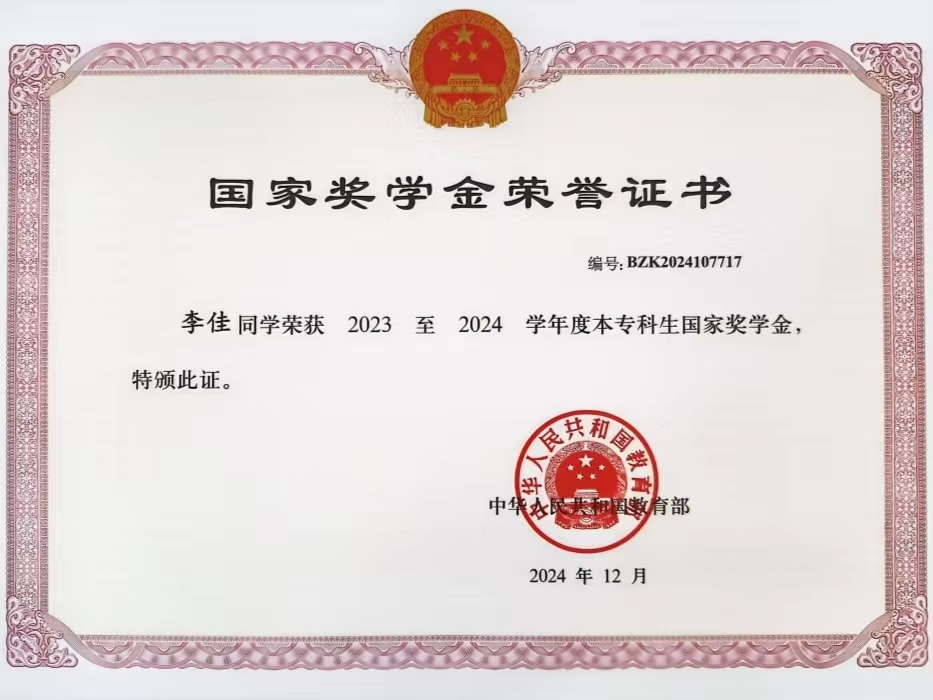 ——学前教育系学生获得“2025年国家奖学金”荣誉