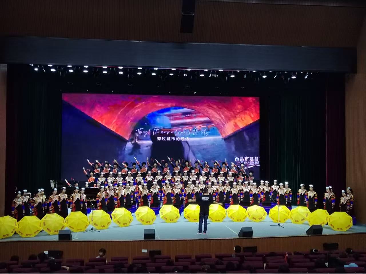 作为纪念“彝海结盟”90周年的重要活动,比赛通过合唱、舞蹈与多媒体融合的形式,生动展现红军与凉山各族人民的血脉深情。各院系以经典曲目致敬历史,舞台大屏幕同步播放凉山壮丽山河与长征历史影像,配合灯光特效,构建出跨越时空的红色记忆空间。