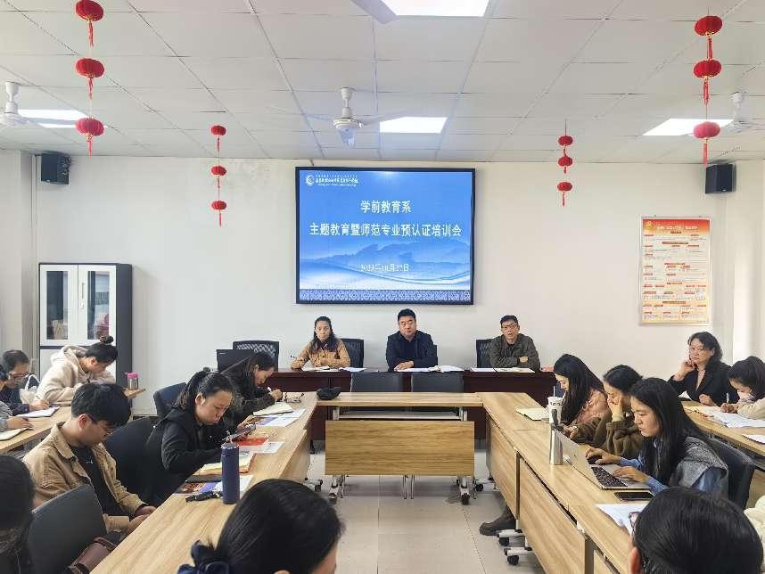 为使师范专业认证工作有序推进,2023年10月27日,学前教育系在第四教学楼4308会议室召开师范专业预认证工作培训会。学校教务处处长周雪娟、副处长肖晶及学前教育系全体教职工参会。