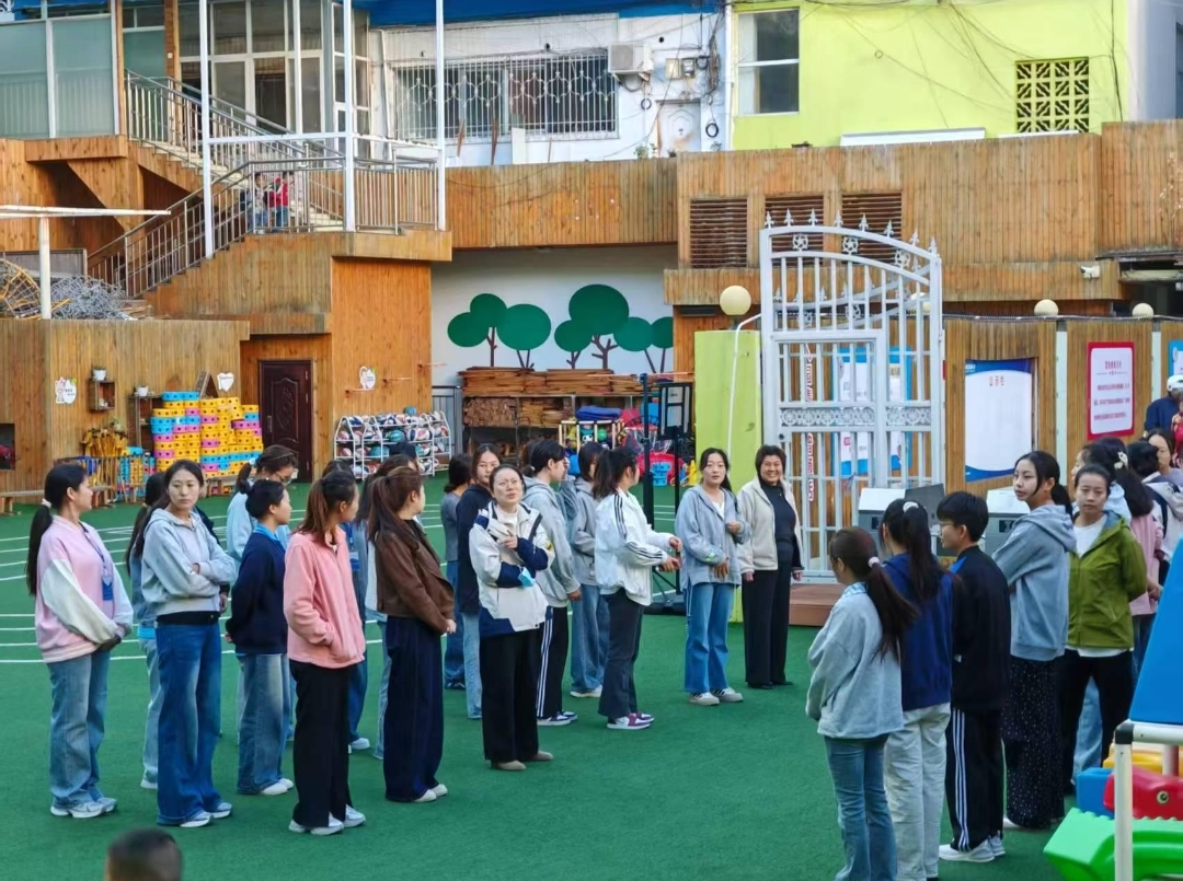 在各幼儿园的精心安排下,同学们全面参与幼儿一日生活的各个环节,沉浸式感受幼教工作的温度与责任。在晨间接待环节,同学们协助老师完成幼儿晨检、身高体重测量等工作,用温柔的问候与耐心的引导,帮助幼儿缓解入园焦虑,开启活力满满的一天;在集体教学活动中,同学们认真观摩优秀教师的示范课,学习如何通过生动的故事、趣味的游戏、直观的教具激发幼儿的学习兴趣,在绘本阅读、美工创作、科学探究等课程中,见证幼儿在玩中学、学中乐的成长瞬间;在户外体能活动中,同学们与幼儿一同参与轮胎游戏、跳绳比赛等趣味运动,在保障安全的前提下,鼓励幼儿大胆探索、勇敢尝试,培养幼儿的运动习惯与协作精神。