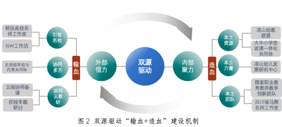 本成果在理念层面实现了重要突破,突破传统民族地区师资培养中依靠帮扶方“单一输血”或者靠自身“封闭内生”的路径依赖,创新性提出外部输血与内部造血共生理念。通过名校引智实现高质量资源输入与能力转化,完成“输血赋能”;同时依托本土平台强化内生发展能力建设,实现“造血提能”,二者形成相互滋养、良性互动的协同机制,有效推动了凉山地区幼教师资培养从被动依赖向主动再造的根本性转变,实现外部支援与本土建构的互济共赢,为提升民族地区高校自我发展能力提供了新的理念引领。