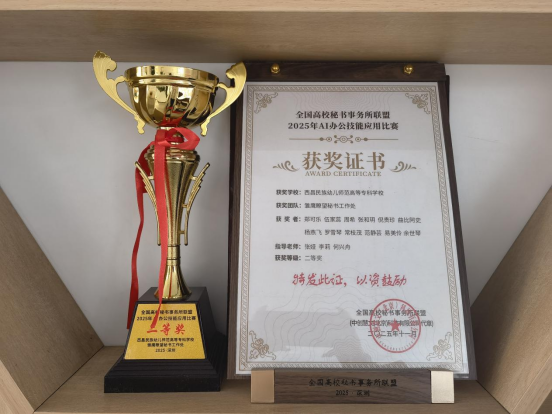 2025年10月,现代文秘学子在全国高校联盟2025年现代文秘AI办公技能应用比赛中获得“团体二等奖”。