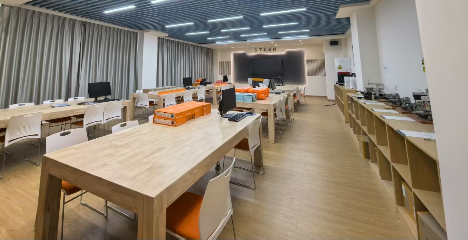 本专业办学设施先进、教学资源完备。拥有STEAM实训室、小学教师课程与教学能力智慧实训室、书法实训室等,可支持小学各学科课标解读与教材研究、教学方法与设计等课程的教学实践;依托学校音乐、舞蹈、美术实训室,微格实训室及智慧教室,可支撑小学各科教学模拟训练系列课程的综合实践教学。