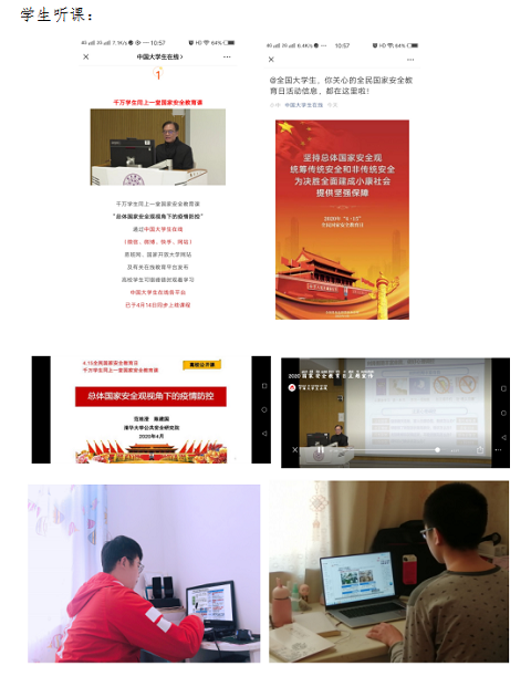 2020年4月15日上午小学教育系1100余名学生在辅导员组织下学习了线上“国家安全教育课”。同学们从总体国家安全教育观、新形势各领域安全关联性、提升信息辨识能力等,了解国家安全教育内容,认真观看和学习了公开课内容,了解到了什么是国家安全日、爱国我们要做到什么等。辅导员根据当前疫情防控形势,就其它传染类疾病的“防、控、治”等进行宣传教育;此外,辅导员就当下网络安全问题进行深入的解剖,结合实际案例和相关法律法规对学生进行宣传引导,通过相关法律法规的学习,提升了学生防范网络犯罪的安全意识。