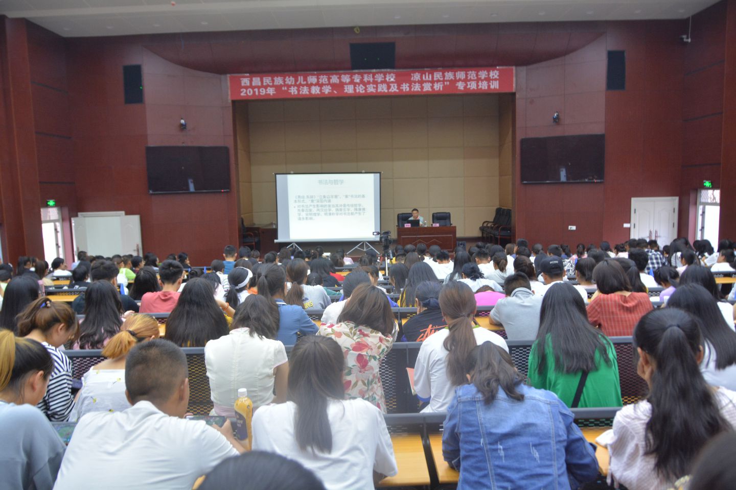 6月11号晚7:00,在我校学术报告厅,举行了一场书法讲座。我们很荣幸的邀请到了凉山州书法协会覃传德老师担任主讲嘉宾。此次活动受到了我校书画爱好者的热烈欢迎和肯定。活动分为三个环节,分别是:一、书法与中国文化。二、临帖的方式和方法。三、亲临小教系观摩指点。