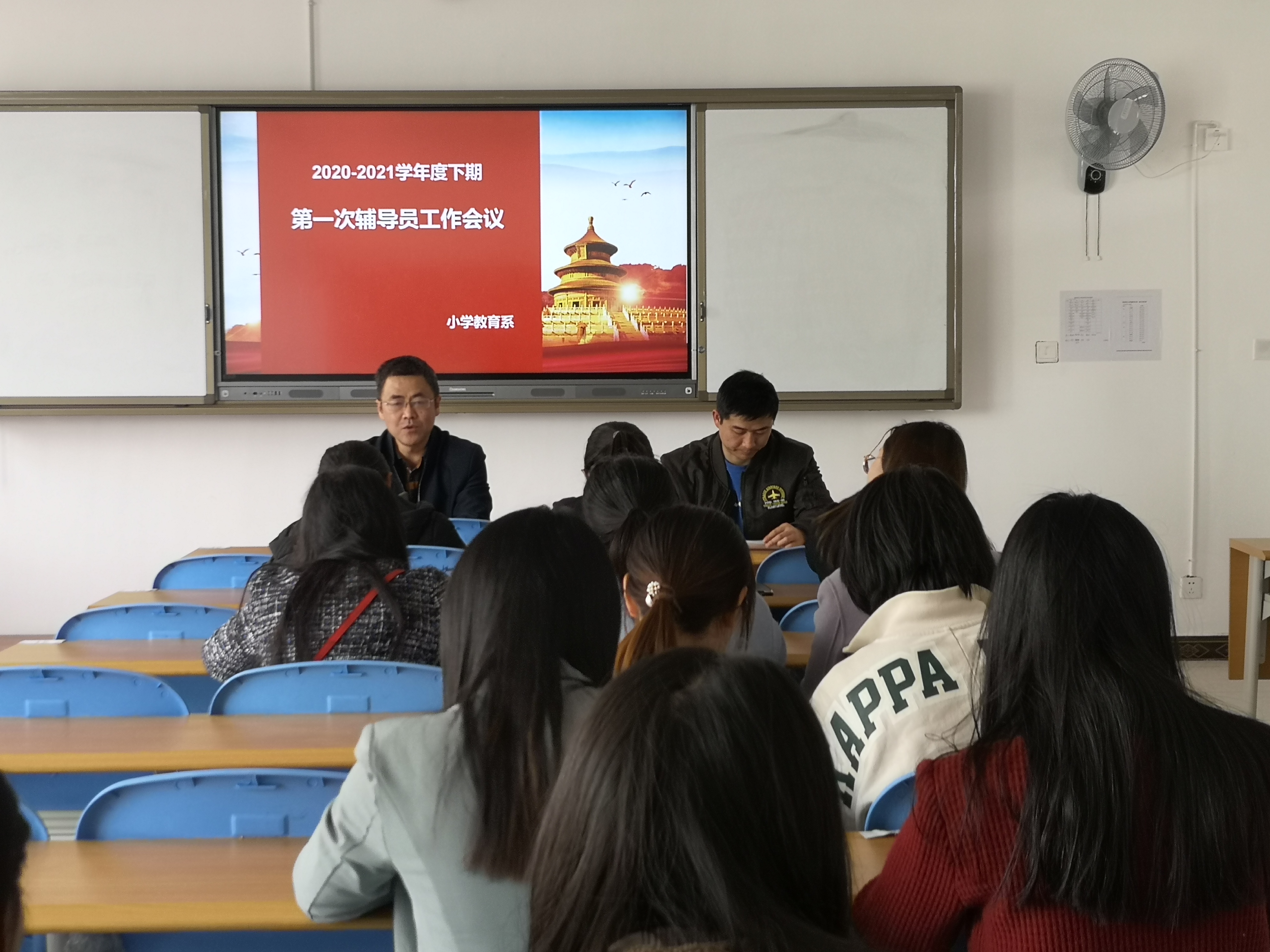 新学期即将开启,为进一步动员我系辅导员明确新学期工作的要求与形式,2021年2月27日下午2:30,小学教育系在第三教学楼3403召开了2021年春季学期辅导员工作会,小学教育系全体辅导员参会,会议由小学教育系主任安险峰主持。