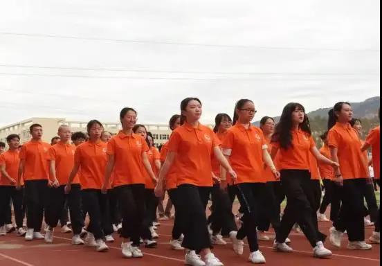 百人队伍浩浩荡荡,加油呐喊声环绕校园