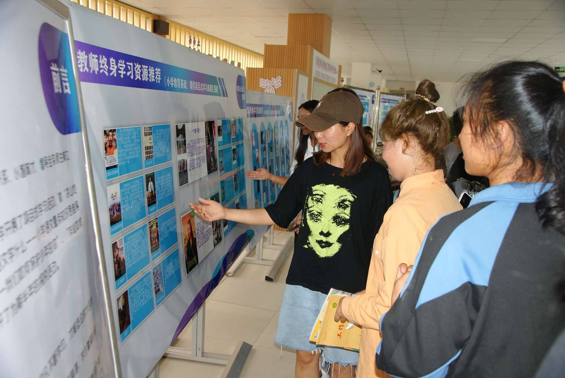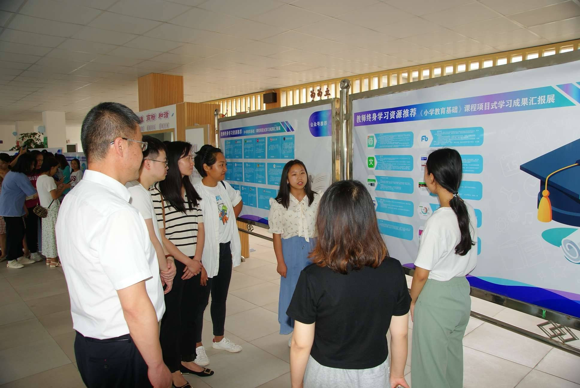 为全面推进“三教改革”工作,深化教学内涵建设,提高人才培养质量,小学教育系专业课程《小学教育学基础》在本学期尝试项目式学习教法,近日,在第三教学楼3楼大厅开展了项目式学习成果汇报暨教师终身学习资源推荐展。