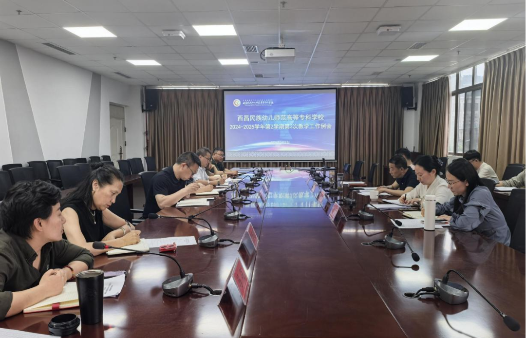 近日,西昌民族幼专2024-2025学年第2学期第三次教学工作例会在行政楼1508举行,会议由学校教务处处长周雪娟主持。副校长袁顶国及各系(院)部相关负责人,教务处相关人员参加会议。