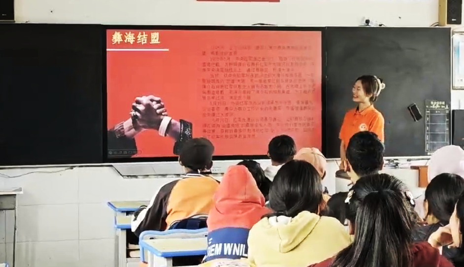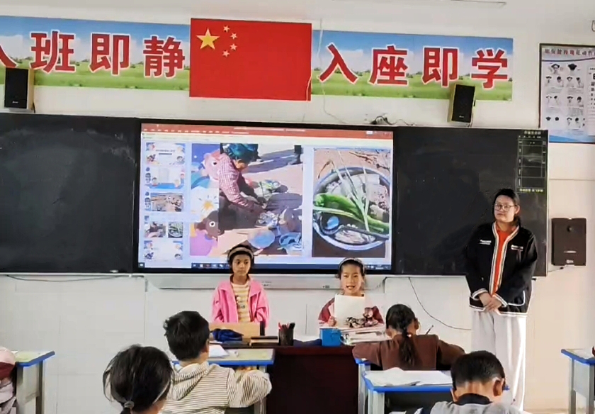 观摩结束后,通过充分观察与小组讨论,小学教育系师范生尝试将李子小学特色结合到我校《教育学基础》课堂探索的项目式学习活动成果中,开展乡村学校教学创新实践。我校学生分组在各年级课堂开展“非遗浸润童心——民族传统服饰纹样感知”、“童年记忆——说说我们的‘奥依莫格’彝家儿童节”“中华美食之舌尖上的大凉山”“节日文化的探究之旅——节日的来历”“英雄故事铸牢共同体意识——刘伯承小叶丹的英雄故事”等涵盖多学科教学、口语交际、美育、德育的专业实践活动,在与小学生的教学互动与作业批改中了解乡村学校学生学情,通过专业实践加深岗位认知,也通过项目式学习活动成果落地感知小组合作学习与教学设计探索带来的教育价值。