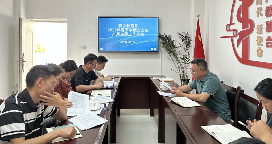 6月17日,我校职业教育系召开2025年安全生产月主题工作会议,传达学习《中华人民共和国安全生产法》《教育系统重大事故隐患判定指南》等重要内容,安排部署安全月活动。