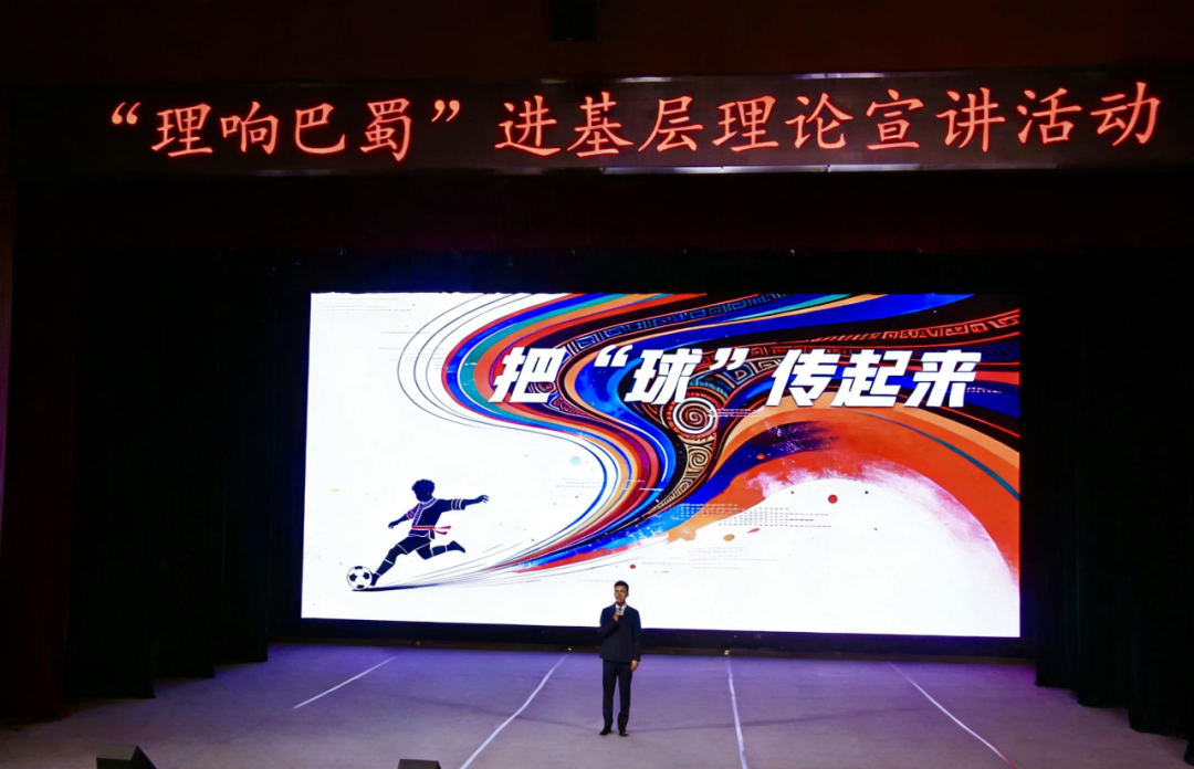 凉山州“思尔畅·理润凉山”宣讲队队员、西昌市融媒体中心一级播音员耿晨宣讲《把球传起来》,以凉山足球追梦之路为喻,生动展现凉山儿女攻坚克难、脱贫奔康的奋斗姿态与精神力量。