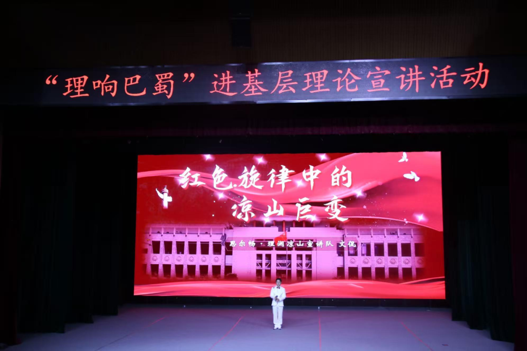 中共西昌市委党校高级讲师、凉山州“思尔畅·理润凉山”宣讲队队员文侃宣讲《红色旋律中的历史巨变》,以红色故事为脉络,展现凉山跨越发展的时代巨变与辉煌成就。